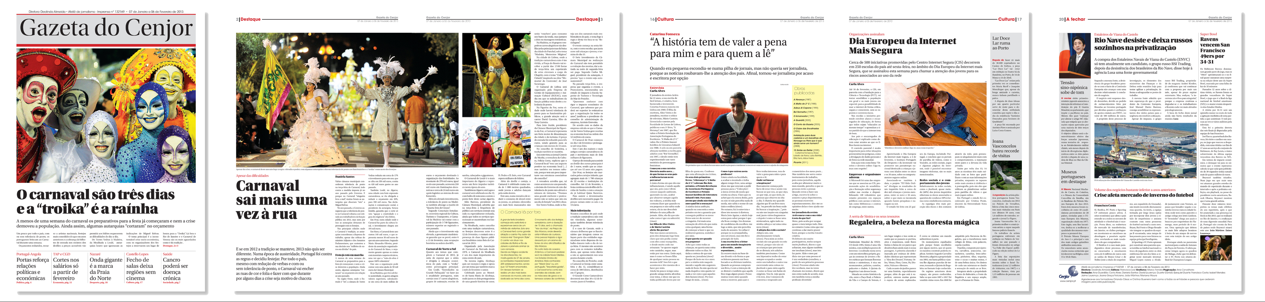 Gazeta produzida no Ateliê de Imprensa, que decorreu entre 7 de janeiro e 6 de fevereiro de 2013.